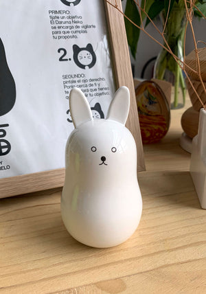 Los muñecos Daruma representan a Bodhidharma (Daruma en japonés), el fundador y primer patriarca del Zen. Diminuto Cielo ha hecho su personal versión al darle forma de conejo, unagi, que atrae la suerte.