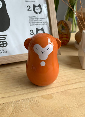 Los muñecos Daruma representan a Bodhidharma (Daruma en japonés), el fundador y primer patriarca del Zen. Diminuto Cielo ha hecho su personal versión al darle forma de mono, saru, que atrae la suerte.